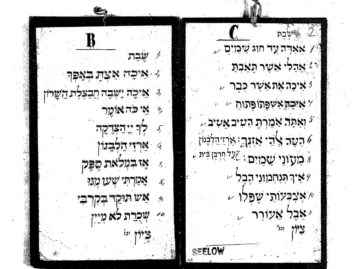 Excerpted pages from surviving hebrew prayers used in the Seelow Jewish Community.